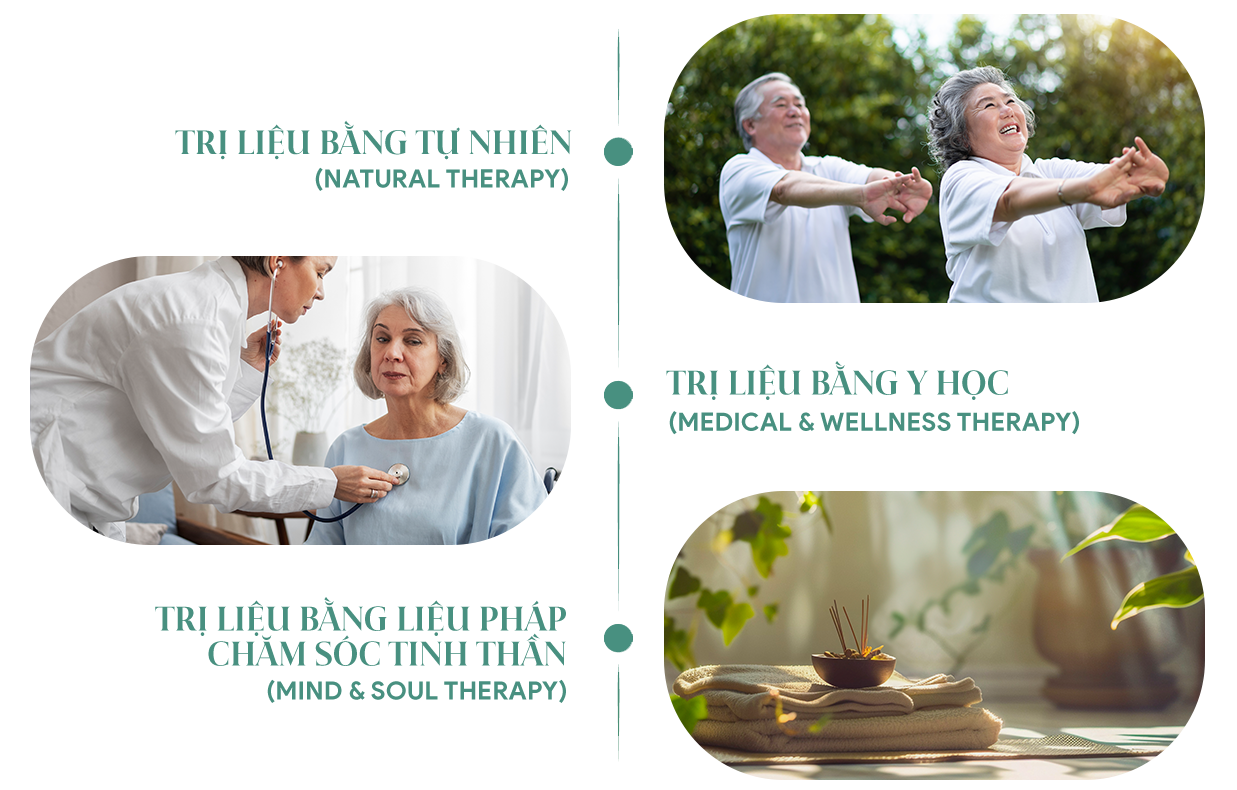 Đây là sự giao thoa giữa trị liệu bằng tự nhiên (Natural Therapy) – trị liệu bằng liệu pháp y học (Medical & Wellness Therapy) và trị liệu bằng liệu pháp chăm sóc tinh thần (Mind & Soul Therapy).